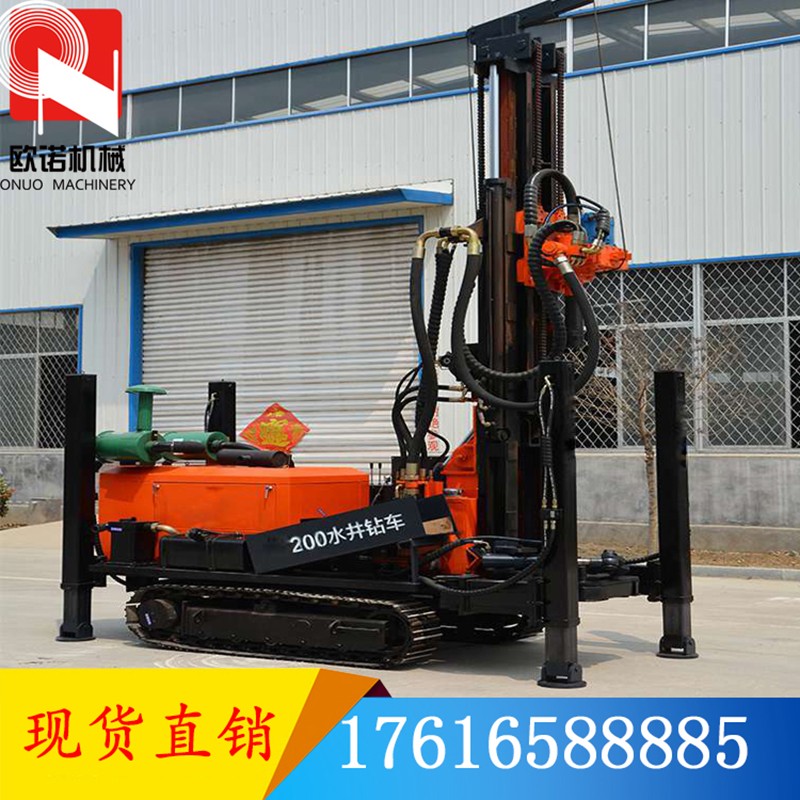 1. 鉆機(jī)工作部與拖拉機(jī)整合為一體,拖拉機(jī)既是運(yùn)輸機(jī)械也是鉆機(jī)。在前往工作場(chǎng)地時(shí),鉆機(jī)后面可以牽引空壓機(jī),外出打井只需再另配備一輛三輪車裝載鉆桿即可,這樣節(jié)省了運(yùn)輸車輛的投資,外出打井也更方便。因機(jī)身小而靈活,拖拉機(jī)更適合于野外、村外等情況的行駛及操作,農(nóng)村胡同、農(nóng)家院等都能方便進(jìn)入鉆井。