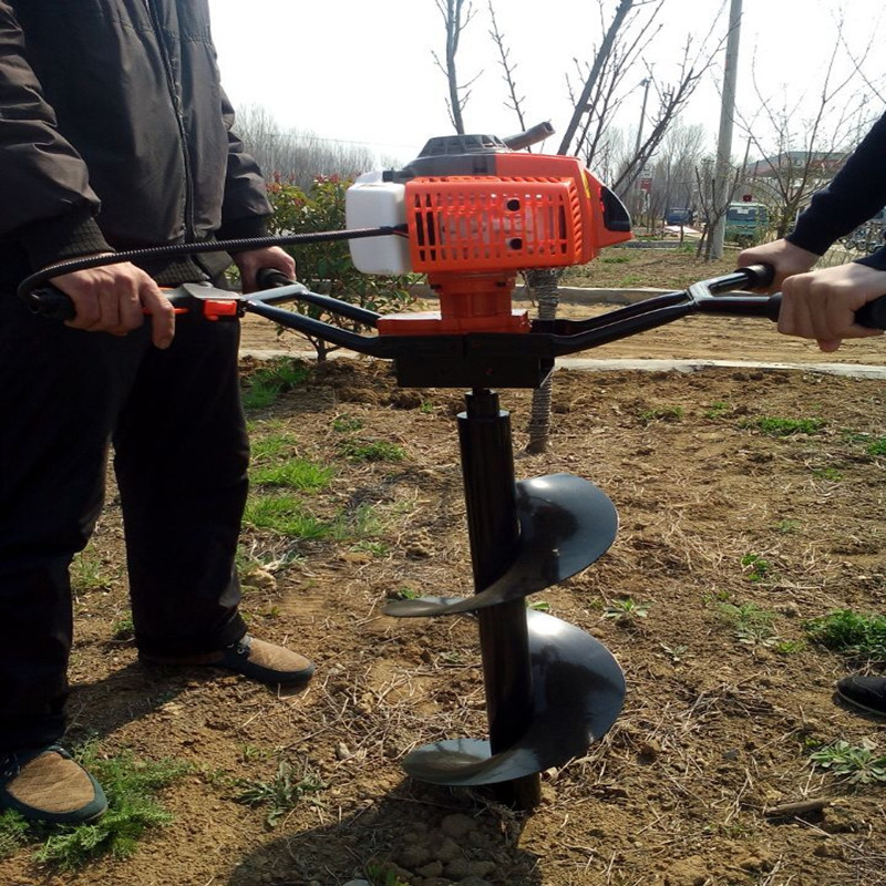 本機器由小型通用汽油機,超越離合器,高減速比傳動箱及特殊設計的鉆具組成適合于<20度以下的坡地、沙地、硬質土地的植樹造林或果樹種植,道路兩側綠化植樹等。苗木種植挖穴,畜牧圍欄埋樁挖穴;葡萄胡椒種植埋樁挖穴;果樹、林木施肥挖穴。鉆頭直徑(mm):80 100 150 200 250 300 400mm