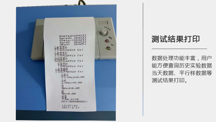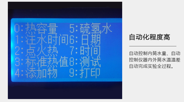6、自動實現注水、排水、攪拌、點火、數據采集和處理、數據保存、顯示儀器狀態,自動打印測試結果。