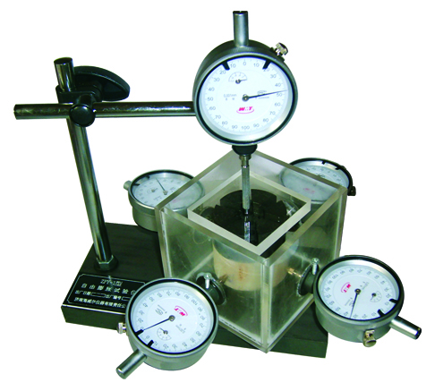 該試驗儀器為千分表數字直讀式結構,適用于各類巖石膨脹性試驗中的無約束情況下,各方向位移變化的試驗,配有透水板,千分表等試驗裝置。