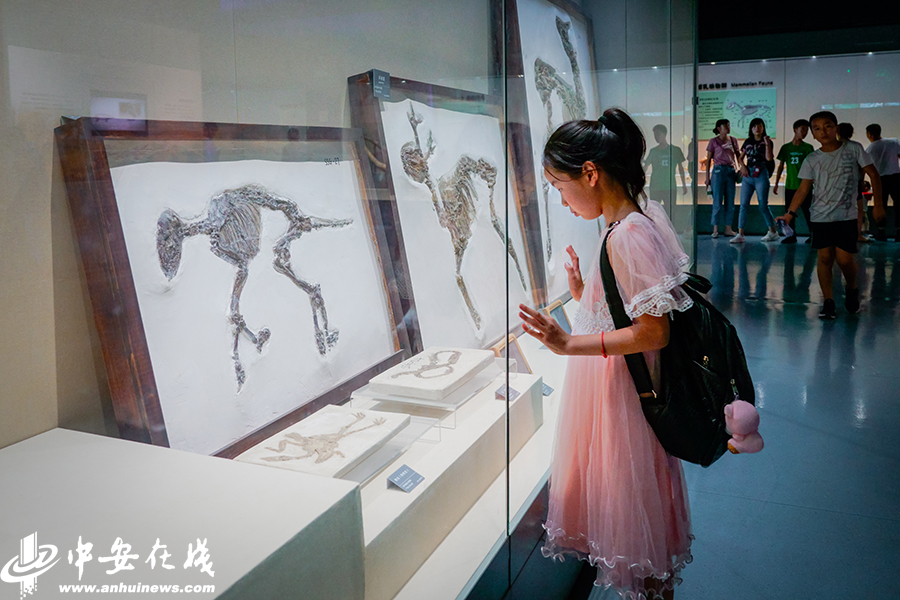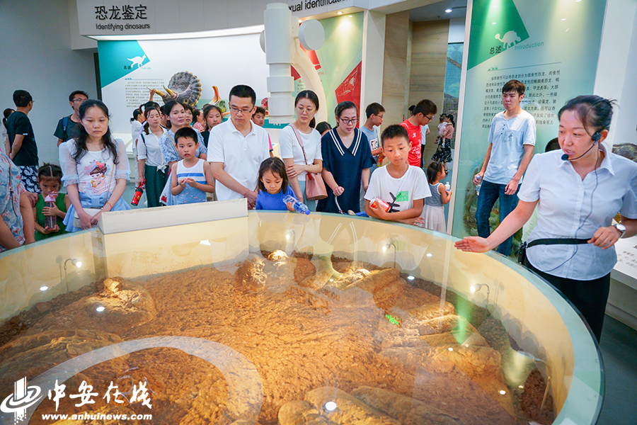 中安在線、中安新聞客戶端訊 三伏天,室外活動(dòng)需頂著酷暑。逛博物館不失為一種降溫避暑的好選擇。對(duì)于熱愛(ài)自然科學(xué)的孩子們來(lái)說(shuō),暑假的來(lái)臨意味著更多的課外時(shí)間,在博物館的展廳內(nèi)觀賞恐龍骨架、穿越遠(yuǎn)古時(shí)空成為度夏的理想方式。8月3日,在安徽省地質(zhì)博物館里,一群熱愛(ài)生物和地質(zhì)科學(xué)的孩子或跟隨家長(zhǎng)、或結(jié)伴而行,穿梭在博物館涼爽寬敞的大廳內(nèi),在知識(shí)的海洋中遨游。(徽鏡映像工作室 記者 許夢(mèng)宇)