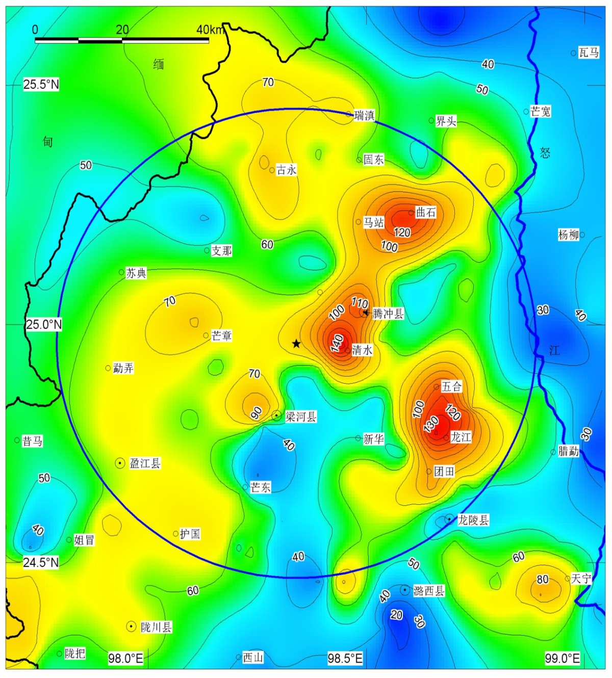云南地震局趙慈平研究員在深部探測的課題中,首次利用衛星紅外遙感MODIS夜間月平均地表溫度數據和方法,確定了騰沖地區地溫異常的空間范圍。他通過對騰沖火山區上地殼溫度場、幔源物質釋放場和巖漿囊現今溫度的綜合研究,以及結合深部探測、活動性監測和前人的研究結果等,提出騰沖地區現今地下存在3個巖漿囊:第1巖漿囊位于騰沖縣城和清水一帶,第2巖漿囊位于馬站和曲石一帶,第3個巖漿囊位于五合、龍江、團田和浦川一帶。實驗測試結果顯示,3個巖漿囊釋放揮發物質的幔源比例依次為70%、60%和30%;埋藏深度分別為5~25km之間、10~25km之間、7~14km之間;現今溫度分別為第1巖漿囊平均555℃、第2巖漿囊平均532℃、第3巖漿囊平均679℃,最高溫達1200℃。