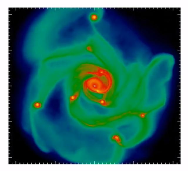 所以從一開始我們就得到一個在平面上更整齊的原恒星系,而不是一個隨機聚集的球體。要進入下一步,形成行星,就必須等靠理論建模模擬了,因為在一個年輕的恒星系中,行星形成過程至少得需要百萬年以上,我們不能去長時間的觀察。