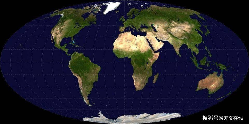 美國宇航局地球觀測站收集的可見地球圖像的摩爾韋德投影。