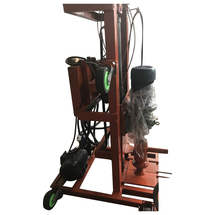 我公司生產(chǎn)的液壓升降電動(dòng)打井機(jī)是一種簡單、方便、經(jīng)濟(jì)、實(shí)用的新型機(jī)械化打井機(jī),其優(yōu)點(diǎn)是:以小功率,扭矩大、體積小、便攜式、效率高、易操作,噪音小適應(yīng)各種環(huán)境地形的打井機(jī)。該機(jī)器使用方便,操作簡單,成孔速度快,每小時(shí)10米左右,噪音小,操作極為簡便,單人即可操作,機(jī)械自卸鉆桿,以打100米的一眼井為例,鉆桿拆卸平均時(shí)耗10分鐘左右,而且移動(dòng)方便,完成打井作業(yè)后,單人操作即可完成移機(jī)工作。