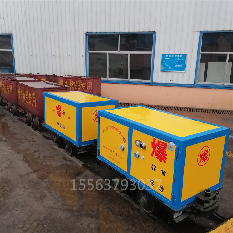礦用有軌運輸車主要的是用來針對不同礦井下工程爆破的時候運送炸藥,雷管等民爆物品的,民爆物品專用運輸車會使井下的爆破施工工程更安全,運送民爆物品更方便