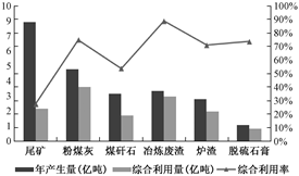 尾礦是選礦過程中的附屬產(chǎn)物。隨著礦產(chǎn)資源種類、數(shù)量和使用范圍越來越廣,尾礦產(chǎn)生量和種類也逐年增加。近年來,我國年產(chǎn)生各類尾礦 10 億 t 以上的,2018 年全國一般工業(yè)固體廢棄物產(chǎn)生量 32億 t,綜合利用率為 45.9%,其中尾礦為8.8 億 t,但綜合利用率僅為27.4%(圖 1)。與粉煤灰 75.7%、爐渣 88.7%相比,是綜合利用率極低的一種大宗工業(yè)固體廢棄物,因此尾礦資源綜合利用率的大幅提升迫在眉睫。