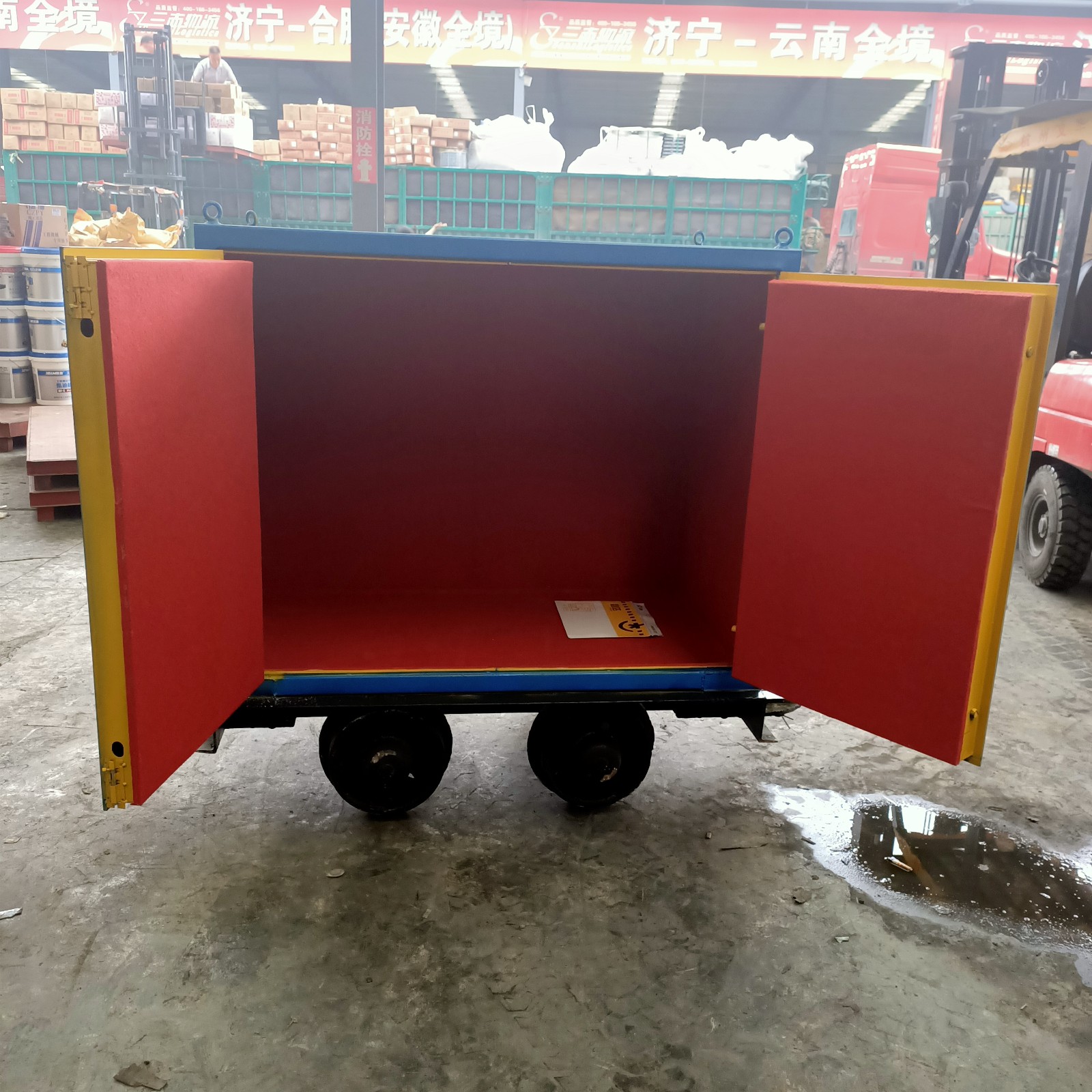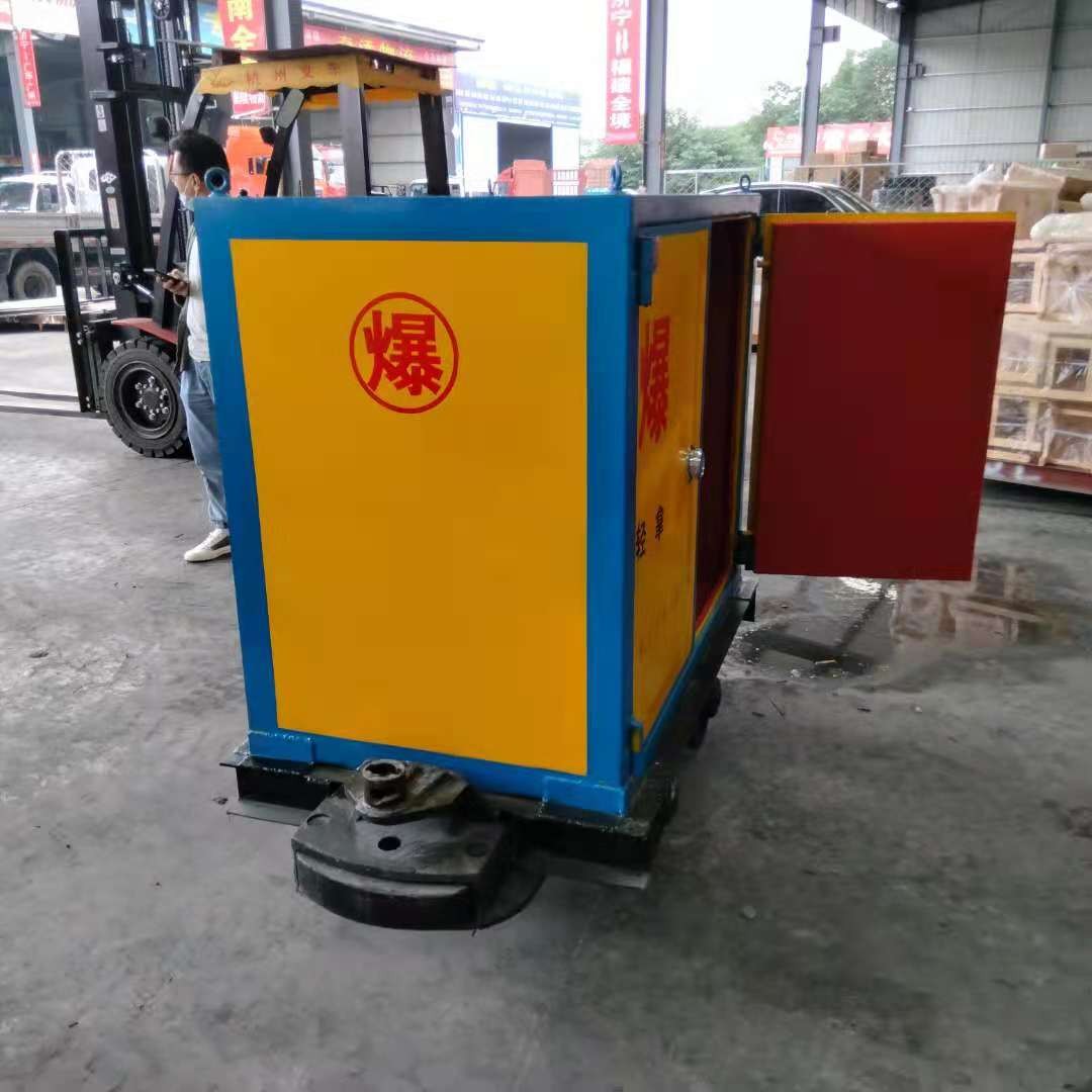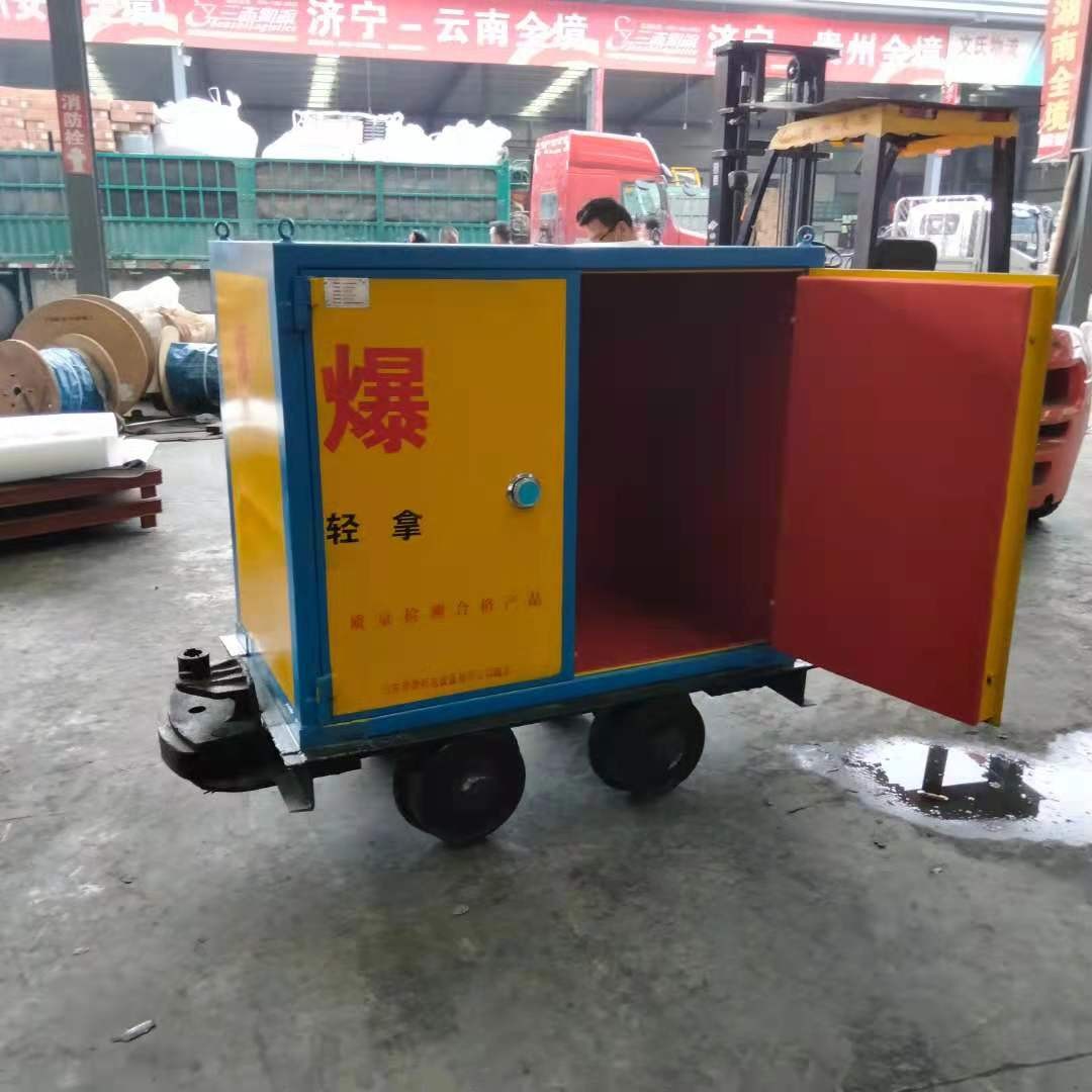 礦車式品運輸車是山東邦泰的新開發(fā)產(chǎn)品,為解決井下軌道火工品的安全運輸問題而解決。礦車式尺寸都是定制的,沒有特別固定的尺寸,一般根據(jù)客戶提供的要求來定制,參考罐籠尺寸、存放量等問題。