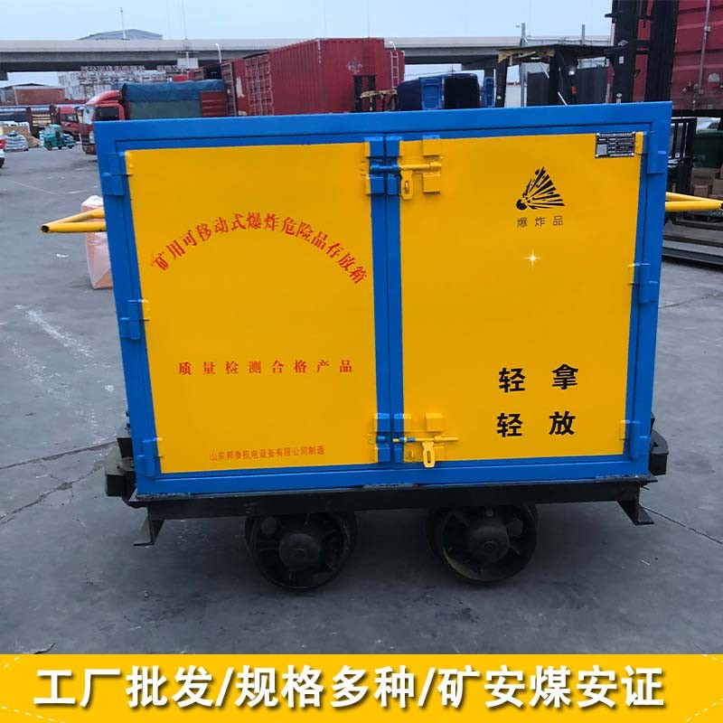 山東邦泰機電設備有限公司專為各類金屬非金屬礦山井下,生產一款專門放置,電雷管,火工品等的運輸車。全稱為:“礦井軌道火工品運輸車”。