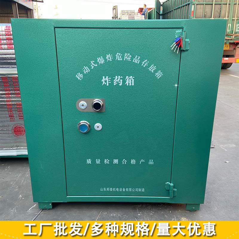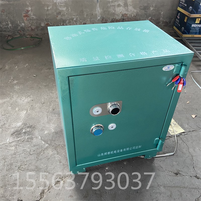 爆炸危險品存放柜依照其功能作用于火工品等危險物品的存儲,其外層為6-8mm淬火加工防爆鋼板,內層附由10mm絕緣木板以及1mm防靜電阻燃氈,同時根據相關部門的防盜要求,成功實現雙鎖聯動功能。外觀大方并經久耐用,門框為加厚鋼質內折門框,門面為高質量表面處理,經過了精心的磷化處理,使其更具耐腐蝕性,進口噴涂流水線,高壓靜電粉體噴涂,高溫烘烤使產品色澤光亮,附著力強;超厚門扇,雙重防撬扣邊,防撬、防盜。
