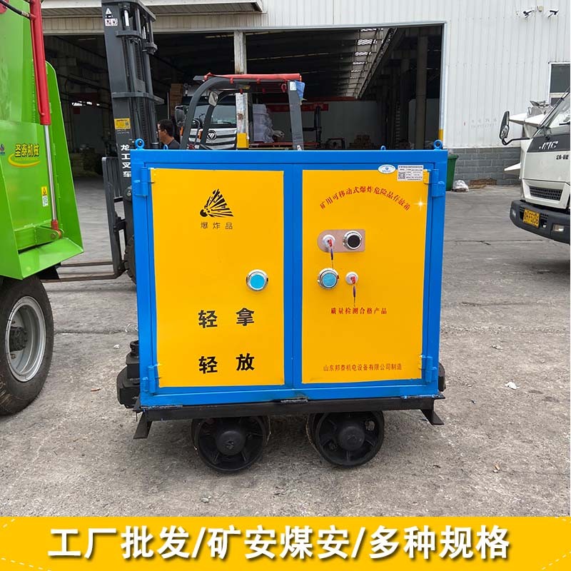 民爆物品運輸箱又叫火工品運輸車,是礦山用來運輸火工品的一種運輸車輛,其大體有兩部分組成:一是礦用材料運輸車二是礦用可移動式爆炸危險品存放箱。