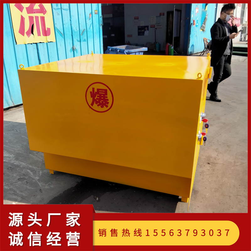 避炮棚采用6-8mm淬火鋼板一體焊接而成,內置10mm絕緣木板和2mm厚防靜電氈。開門方式可選用單開門或雙開門,為方便現場裝卸,可在上方四角加裝吊環,柜體兩側可安裝通風口和防蚊蟲網。