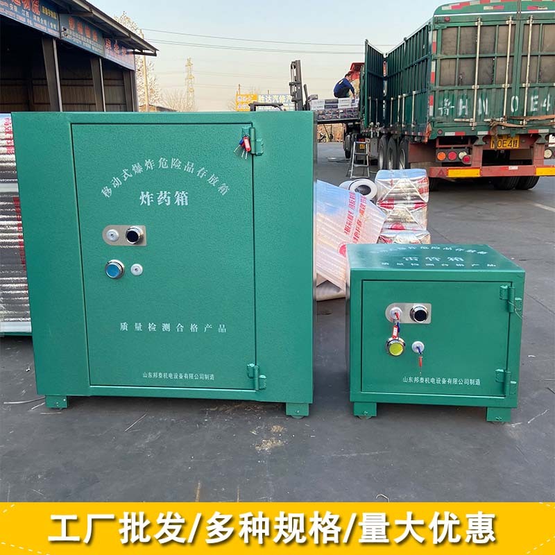 火工品防爆箱是爆破器材使用現場用以存放雷管和零散(非整包)炸藥的設施。雷管和零散炸藥應分別存放于不同的活動火工品防爆箱箱內