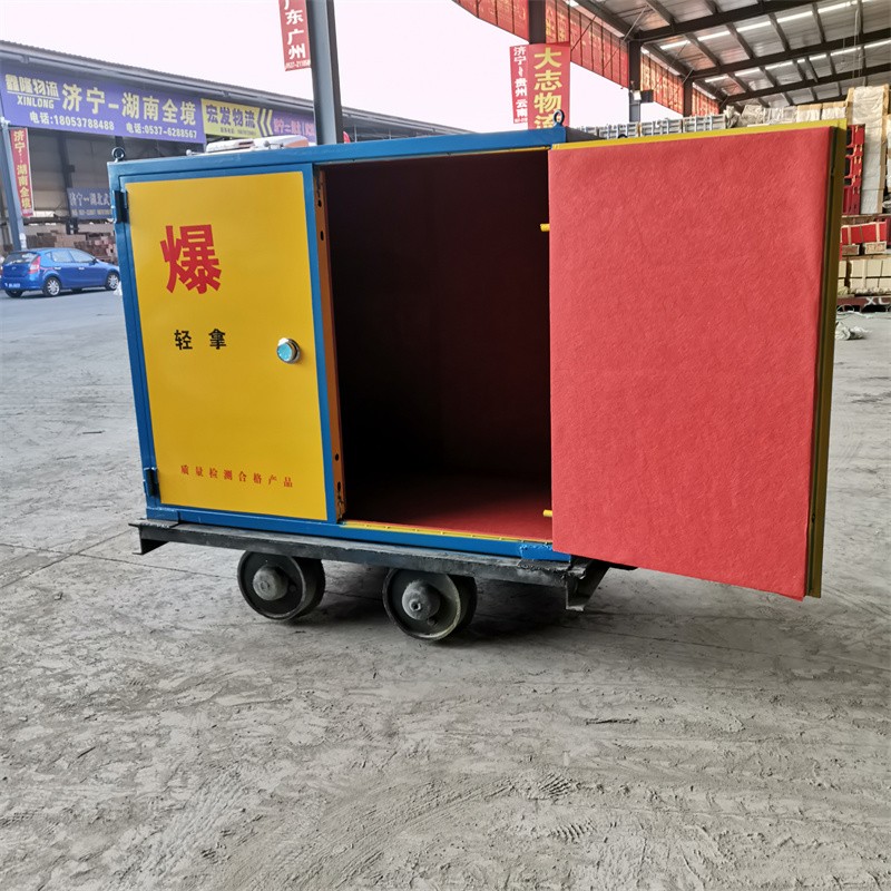 600/762/900軌距一體式炸藥車,為山東邦泰集團專為各類礦山井下生產的一款專門放置導爆管、電雷管、炸藥、爆破火工品等爆破器材的儲運柜。全稱為:“礦用軌道炸藥運輸車”。