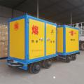 600/762/900軌距一體式炸藥車主要分為兩部分組成; 第一部分是礦用移動式危險品存放箱,門板6.0mm-8.0mm 厚防爆鋼板,內置10.0mm 防靜電木板和2.0mm 厚防火防震的阻燃氈。另一部分為專用礦車,礦車軌距(600mm/762mm/900mm)。