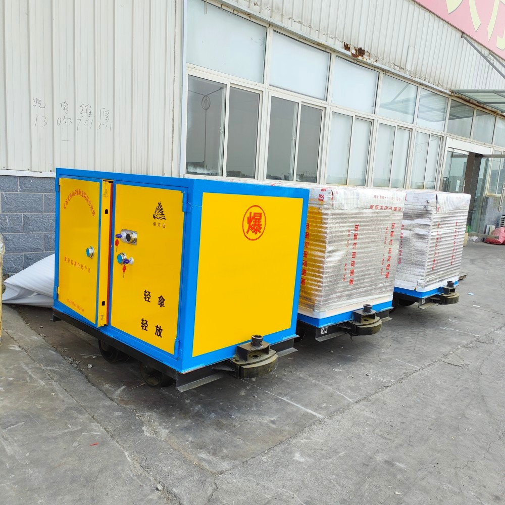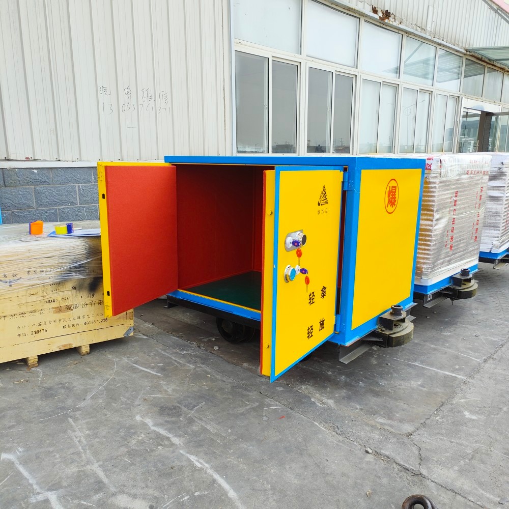 根據(jù)每個(gè)礦山的罐籠尺寸、軌距和爆破器材存放量不同,運(yùn)輸車的規(guī)格大小不同。具體可以自行咨詢。