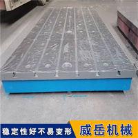 結構式T型槽試驗平臺、工作面帶有孔和T型槽,T型槽分布可以根據用途分為縱向、橫向或縱橫向,有時根據需要工作面還帶有水槽或油槽,T型槽的用途主要是固定試驗設備使用,比如電機振動試驗、發動機磨合試驗等,同時T型槽試驗平臺也可作為加載試驗臺鐵底板、跑合試驗臺鐵底板、扭轉試驗臺鐵底板、疲勞壽命試驗臺鐵底板、測功機鑄鐵底板使用。結構式T型槽試驗平臺、T型槽試驗平板、T型槽試驗平臺材質為HT250強度鑄鐵,工作面硬度為HB170-240,規格型號為500×600mm到4000×9000mm之間的_規格,根據用戶需要加工定制。