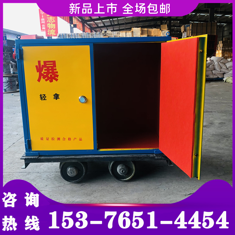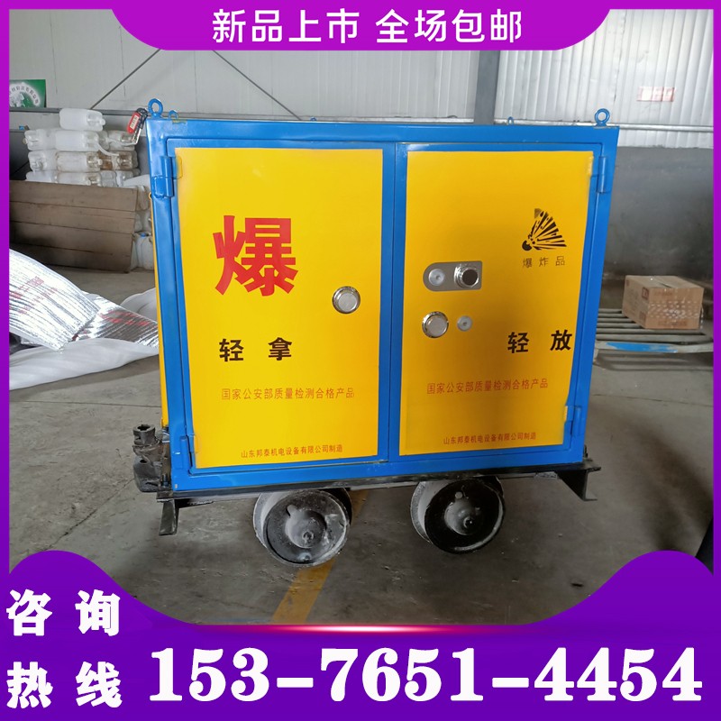 一體式炸藥車,也叫移動(dòng)式火工品運(yùn)輸車、井下有軌炸藥車、爆炸物品運(yùn)輸車、民爆器材儲(chǔ)運(yùn)柜、移動(dòng)式防爆炸危險(xiǎn)品存放箱、牽引式雷管箱等,為山東邦泰集團(tuán)專為各類礦山井下生產(chǎn)的一款專門放置導(dǎo)爆管、電雷管、炸藥、爆破火工品等爆破器材的儲(chǔ)運(yùn)柜。全稱為:“礦用軌道炸藥運(yùn)輸車”。