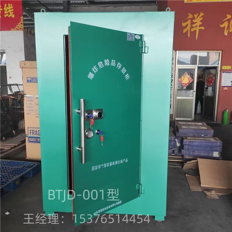 3、山東邦泰機電設備有限公司生產的專業的防爆柜及炸藥庫經過近十年的實踐及市場應用,該公司產品爆炸危險品存放柜依照其功能作用于火工品等危險物品的存儲,其外層為6-8mm淬火加工防爆鋼板,內層附由10mm絕緣木板以及2mm防靜電阻燃氈。同時根據相關部門的防盜要求,成功實現雙鎖聯動功能。外觀大方并經久耐用,門框為加厚鋼質內折門框,門面為高質量表面處理,經過了精心的磷化處理,使其更具耐腐蝕性,進口噴涂流水線,高壓靜電粉體噴涂,高溫烘烤使產品色澤光亮,附著力強。超厚門扇,雙重防撬扣邊,防撬、防盜。并且具備各種安檢資質,是優良的炸藥保管庫的首選生產廠家,而且可以根據客戶的要求進行定制。