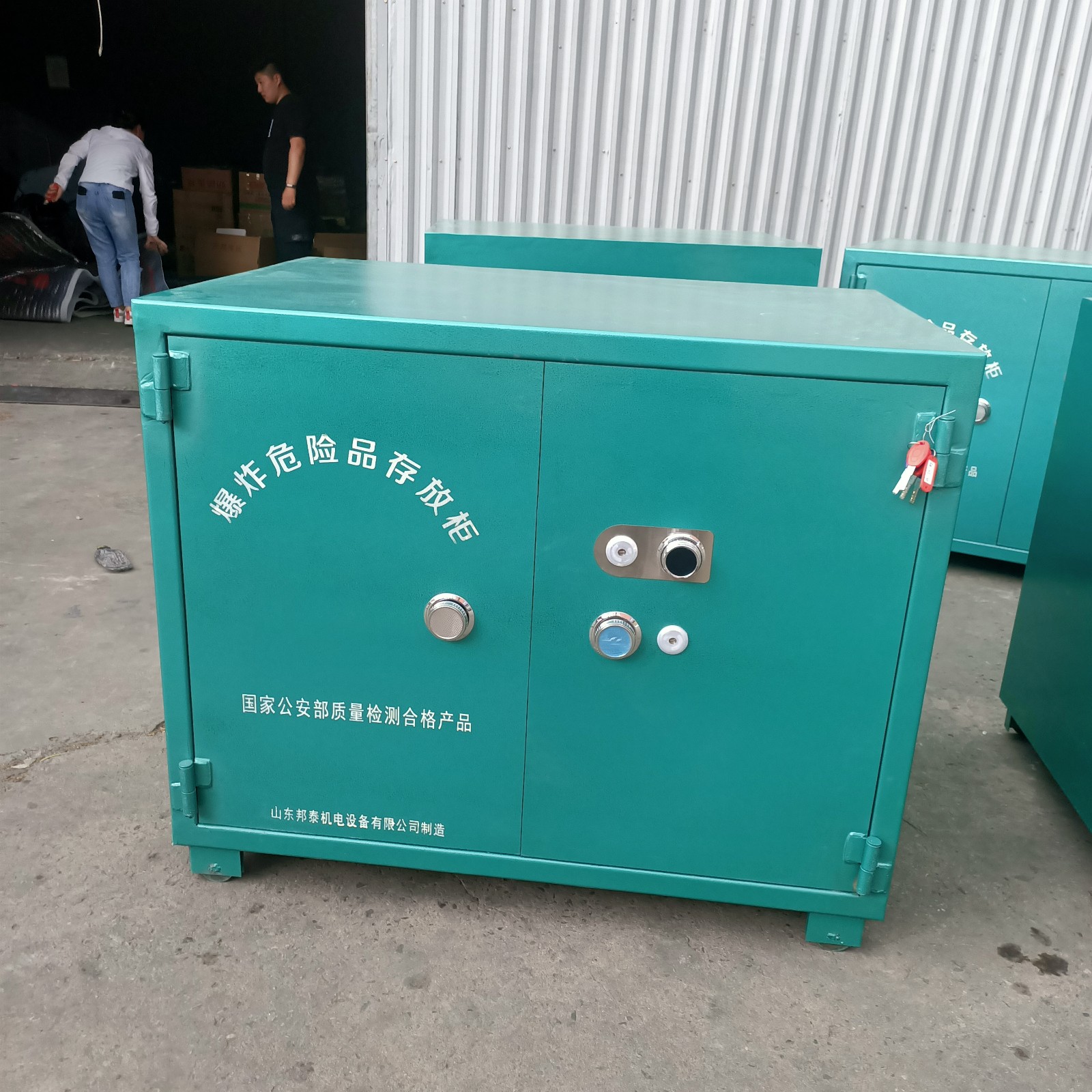 柜體外層采用加厚鋼板制做成型,機械鎖和密碼鎖雙重防護,內(nèi)部是木板和抗震防靜電的氈墊,具有很好的防護功能,規(guī)格多樣,根據(jù)存放量多少,存放炸藥一般從4箱到20箱不等,自助設(shè)計,結(jié)構(gòu)合理,充分利用空間,也可根據(jù)需求特殊定制。
