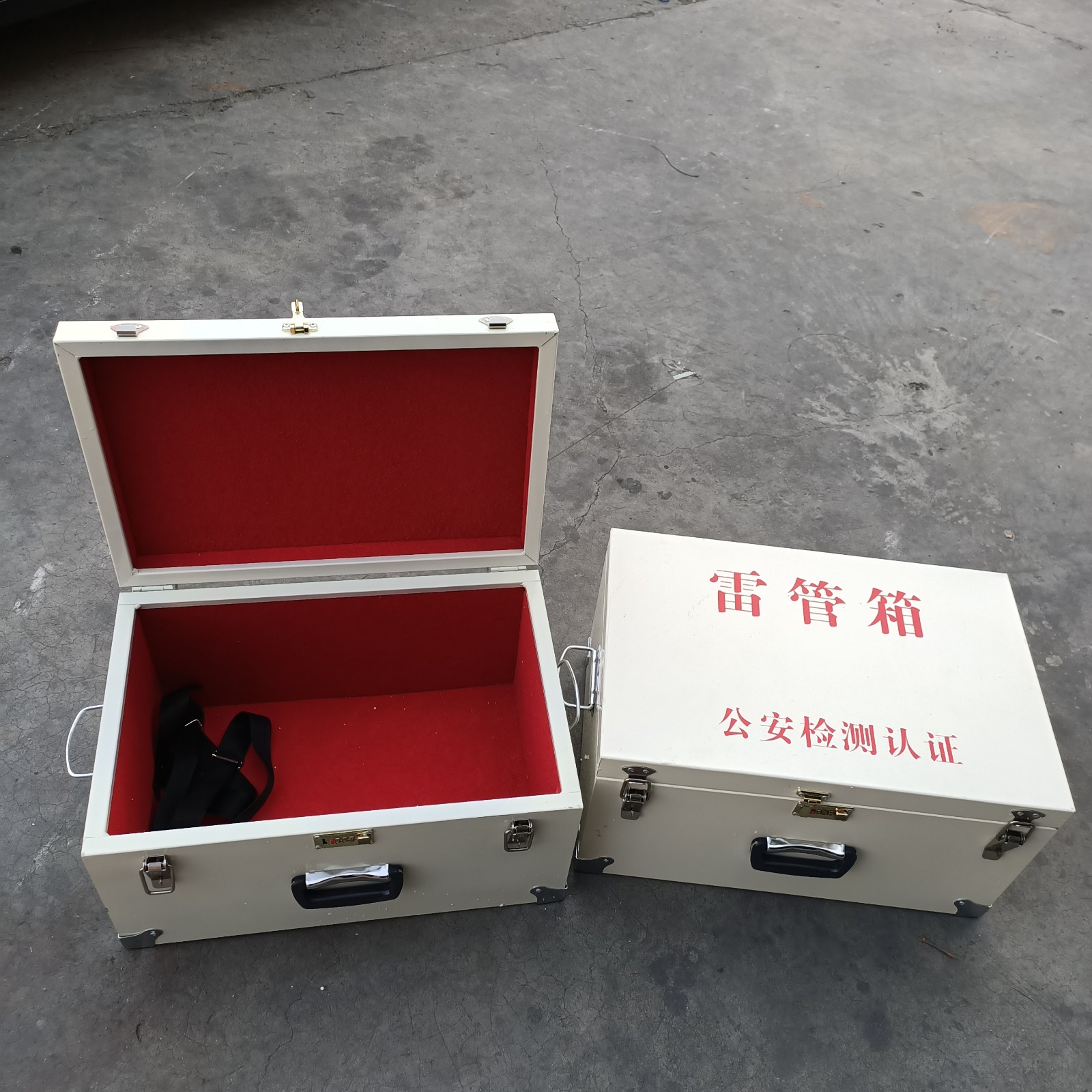 爆破施工專用危險品箱,是一種便于攜帶的炸藥,雷管等危險品的箱體,由于存放的介質(zhì)特殊性,所以材質(zhì)要求嚴(yán)格,箱體集堅固,防磕碰,防靜電以及防潮等特點,外層是由1mm厚淬火加工的防爆鋼板,內(nèi)置約7mm厚的防靜電木板,最里層整鋪防靜電阻燃?xì)帧O涞撞克慕菐в胁讳P鋼防撞包邊,箱體釘有提手便于攜帶,也可安裝背帶用于斜跨,翻蓋設(shè)計便于存取,鎖具配有一個三位密碼鎖和兩個不銹鋼搭扣,可自配掛鎖。