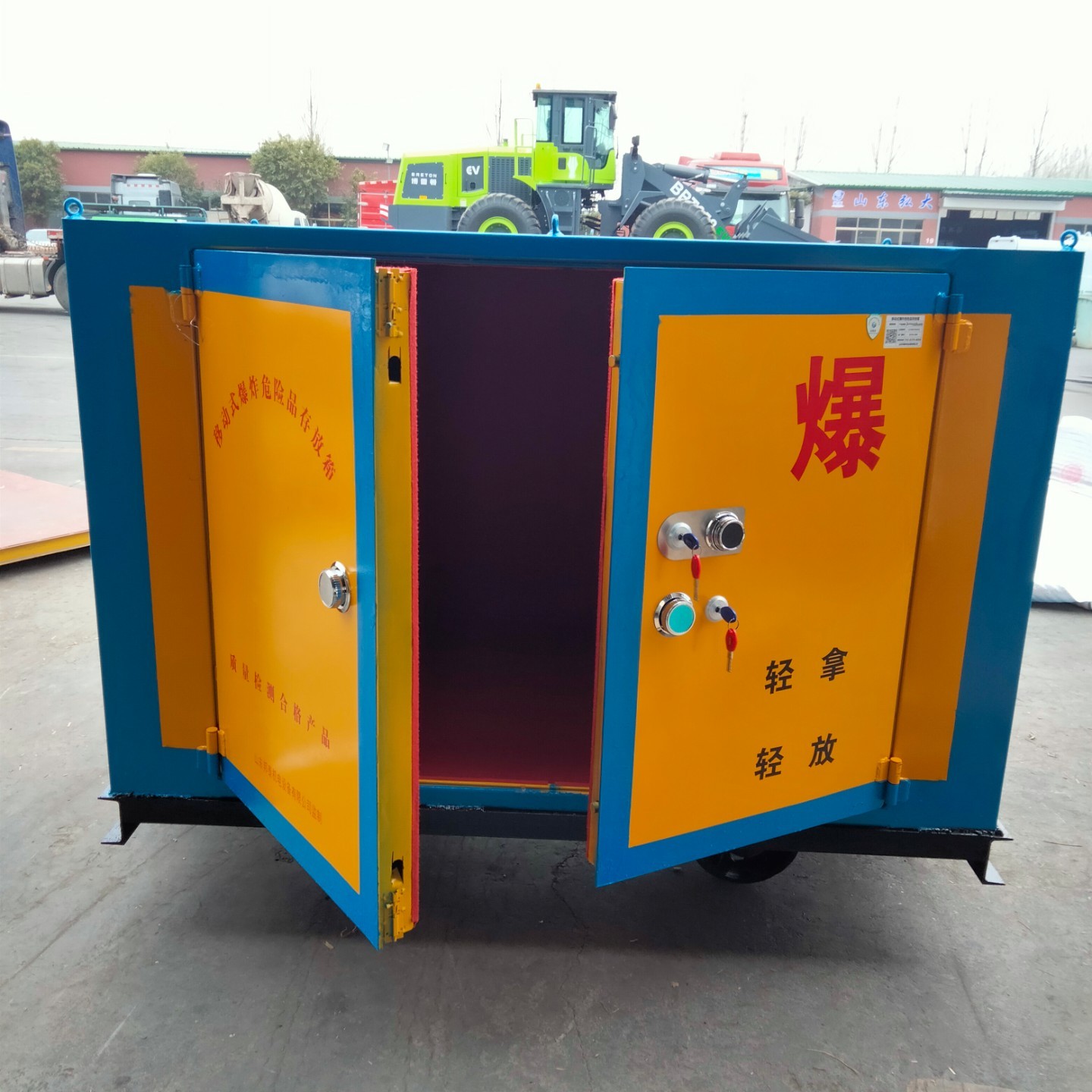 按照存放量的多少,分為存放箱,存放柜,存放庫,下面為大家介紹一款存放柜。存放柜材質使用的是6-8mm厚的防爆鋼板,內層是10mm厚防靜電木板,最里層是約2mm厚的防靜電阻燃氈,鎖具配有一個機械密碼鎖和兩把十字鎖,鑰匙由兩人分開保管,四角可安裝吊環,便于裝卸。