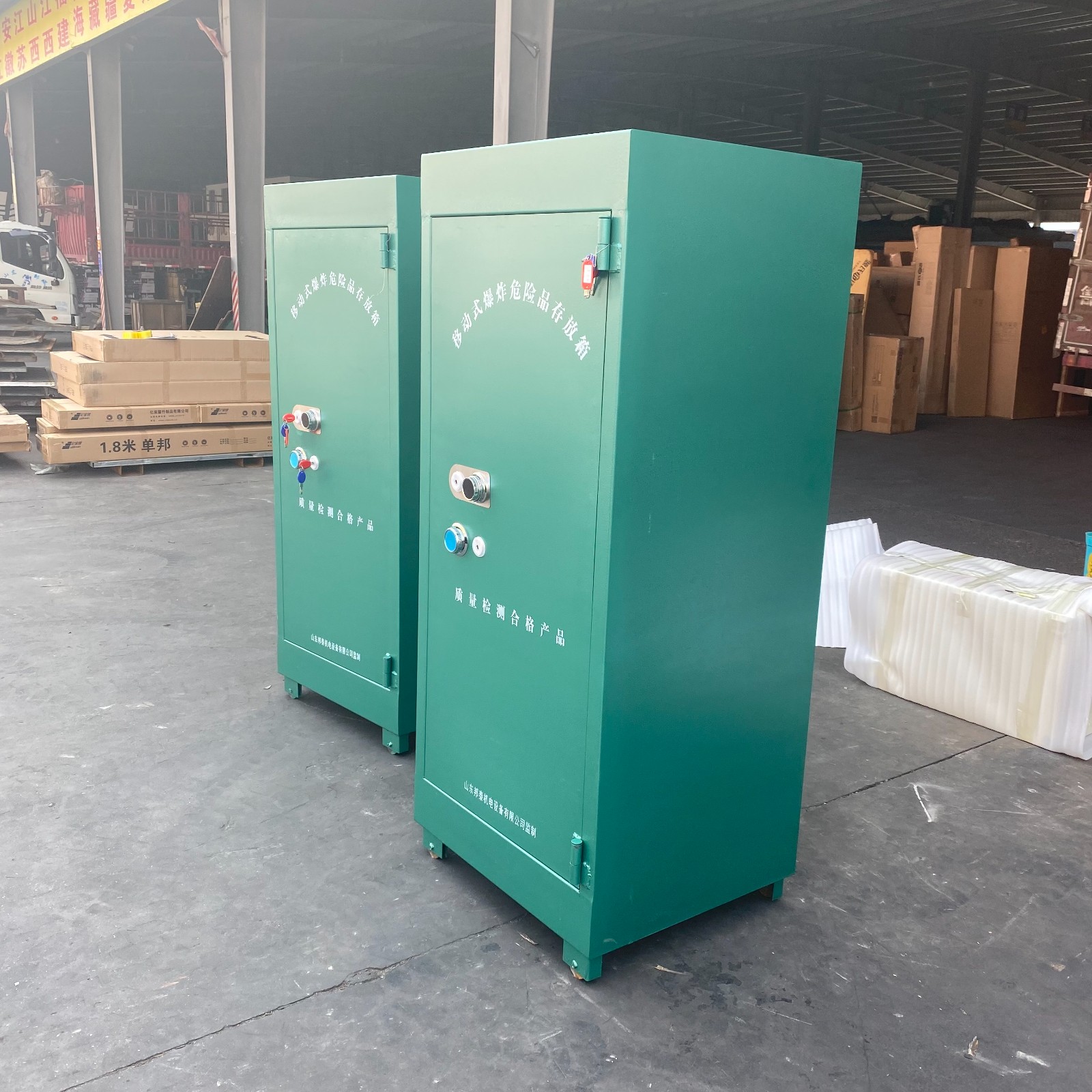 柜體外層采用加厚鋼板制做成型,機(jī)械鎖和密碼鎖雙重防護(hù),內(nèi)部是木板和抗震防靜電的氈墊,具有很好的防護(hù)功能,規(guī)格多樣,根據(jù)存放量多少,存放炸藥一般從4箱到20箱不等,自助設(shè)計,結(jié)構(gòu)合理,充分利用空間,也可根據(jù)需求特殊定制。