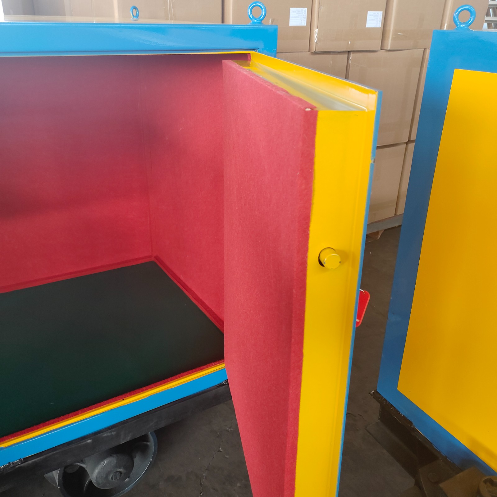 有軌式火工品運輸車,適用于礦山企業運送作業,由礦車和存放柜組合的形式可在井下軌道上推行,或者利用機車牽引,多輛車之間使用插銷,插銷座和三環連來連接,運送安全,大大節省了人力運送的作業強度,也避免了非專業車輛運輸的隱患。