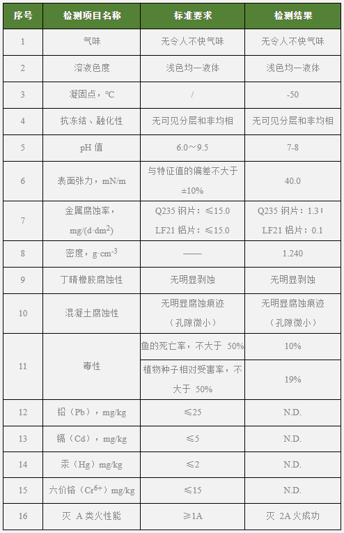 -50℃冰點(diǎn)環(huán)保防凍抗蝕消防液指標(biāo)