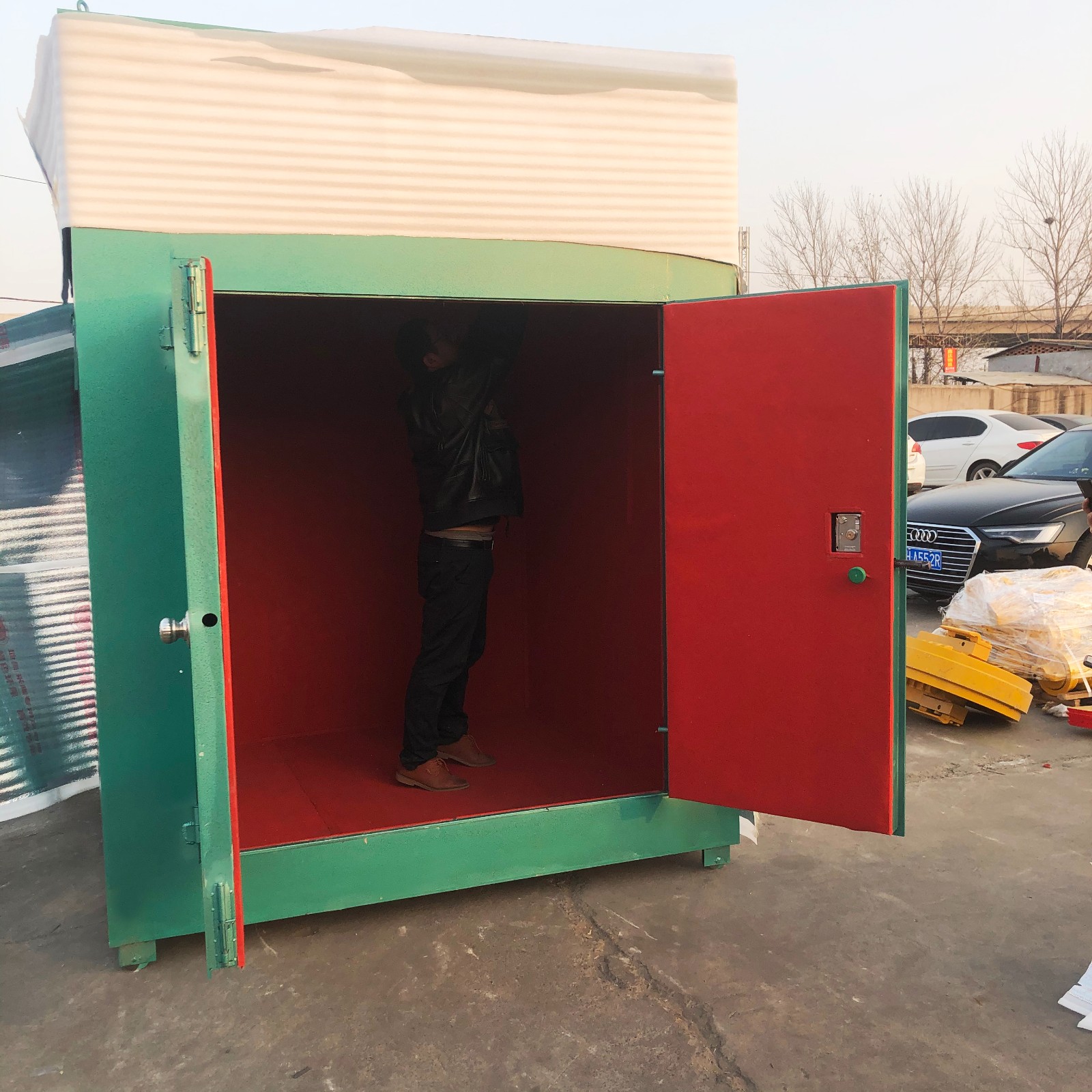 避炮棚材質是由堅硬的鋼板材質焊制而成的,鋼板厚度一般不低于6mm厚,如果尺寸過大可選用厚度更高的鋼板,承重力更強,內飾是一層木板和防靜電軟墊,在兩側做通風窗設計,保障空氣流通性。尺寸可根據需求來定制,詳情請咨詢銷售人員。