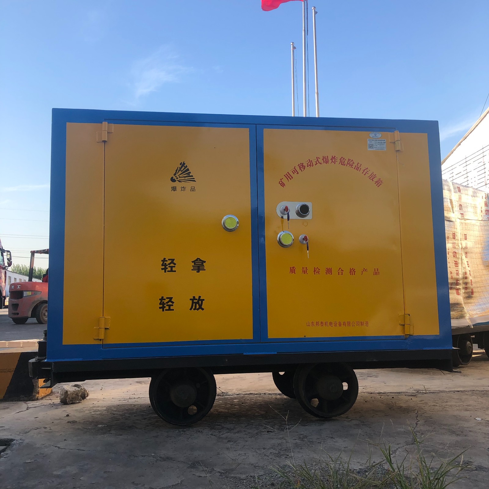 BTJD-001型礦用有軌爆破器材運輸車滿足于各類煤礦和非煤礦山的爆破器材運輸作業,可根據礦山常用窄軌(通常為600mm、762mm、900mm)來定制適合的軌距和存放量,區別于其他類型的爆破器材運輸車,它是專門為礦井使用的,所以,需要具有礦山安全監督部門檢查的證件,煤礦帶有《煤安證》非煤礦山帶有《礦安證》,以及針對爆破器材存儲檢查所需要具備的《公安檢測報告》,報告產品名稱為“礦用可移動式爆炸危險品存放箱”,充分體現出“礦用”和“可移動式”,材質需符合防爆和防靜電要求,所以也應具有這兩項的檢查報告。