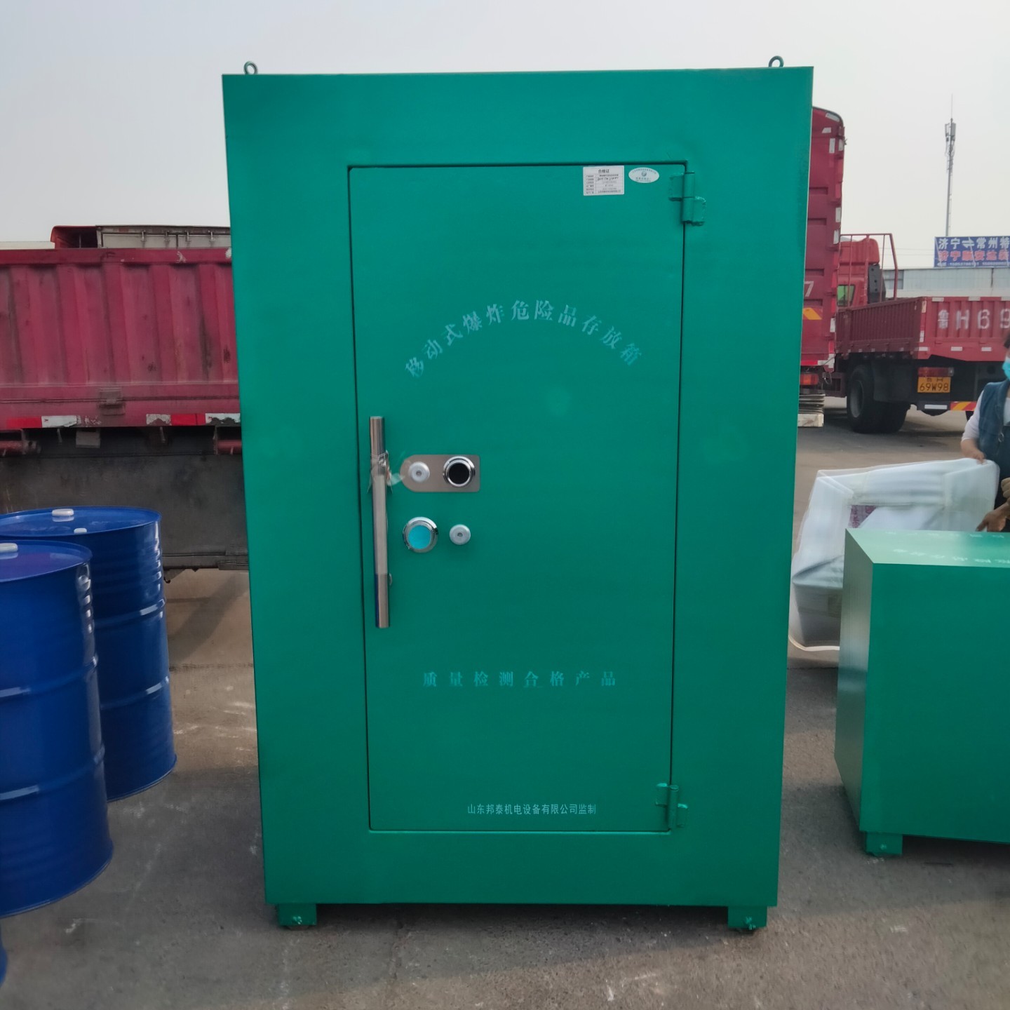 移動式爆炸物品存放柜具有專業檢測的資質,帶有“移動式爆炸危險品存放箱”的公安檢測報告和防靜電墊檢測報告以及防爆檢測合格證。