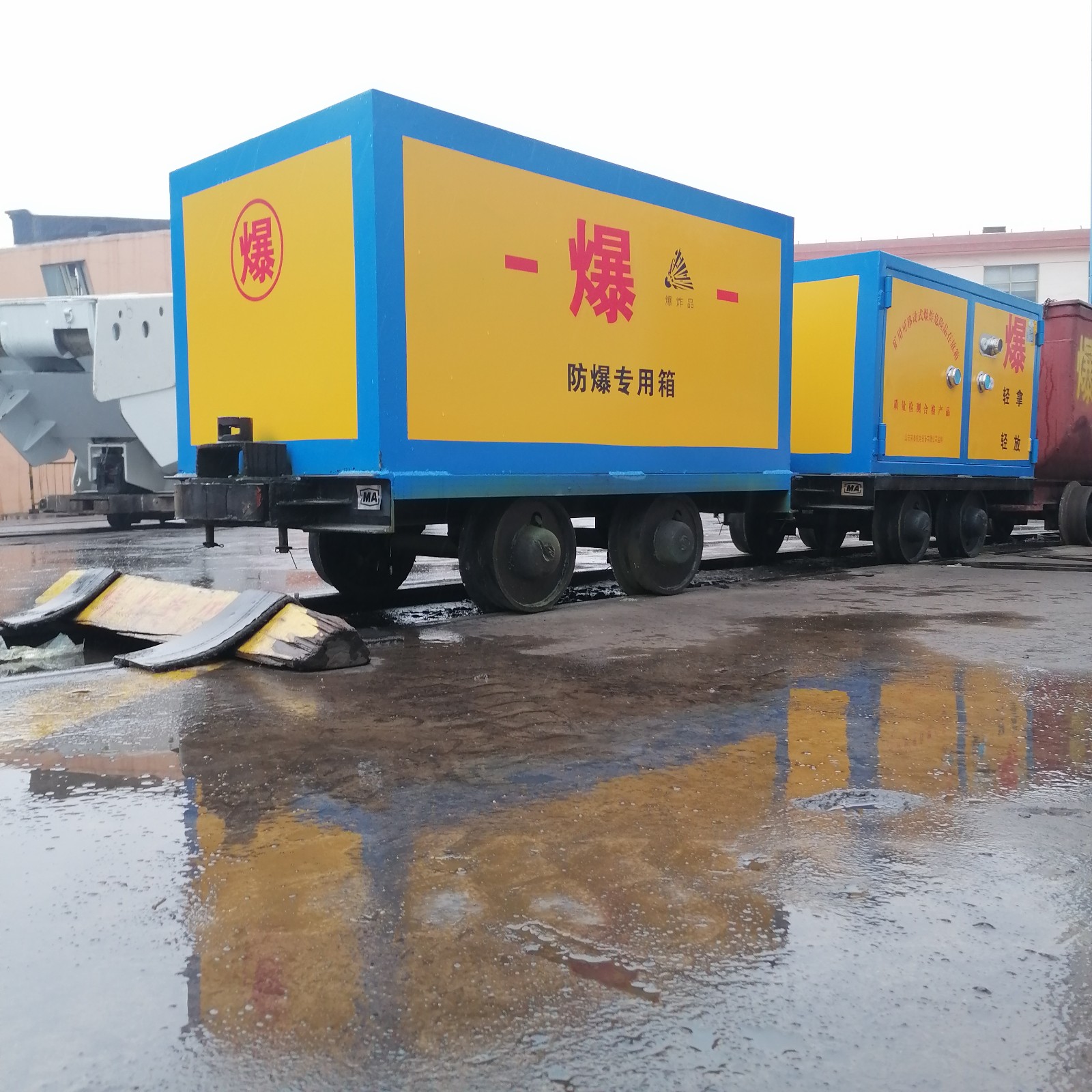 井下有軌火工品車是礦車企業用于運輸火工品至地下爆破施工的一款運輸工具,針對井下既有的軌道情況,可按照不同礦山軌距定制運輸車,礦山窄軌一般可分為600/762/900mm幾種軌距,除了符合礦山的軌距要求,還有其他各種因素影響著車輛的構成,比如運輸量,井下的運輸條件可影響到車輛的大小,是斜井或者是豎井可影響到配備大小碰頭;那么,這款運輸是如何保障火工品的存放安全呢?