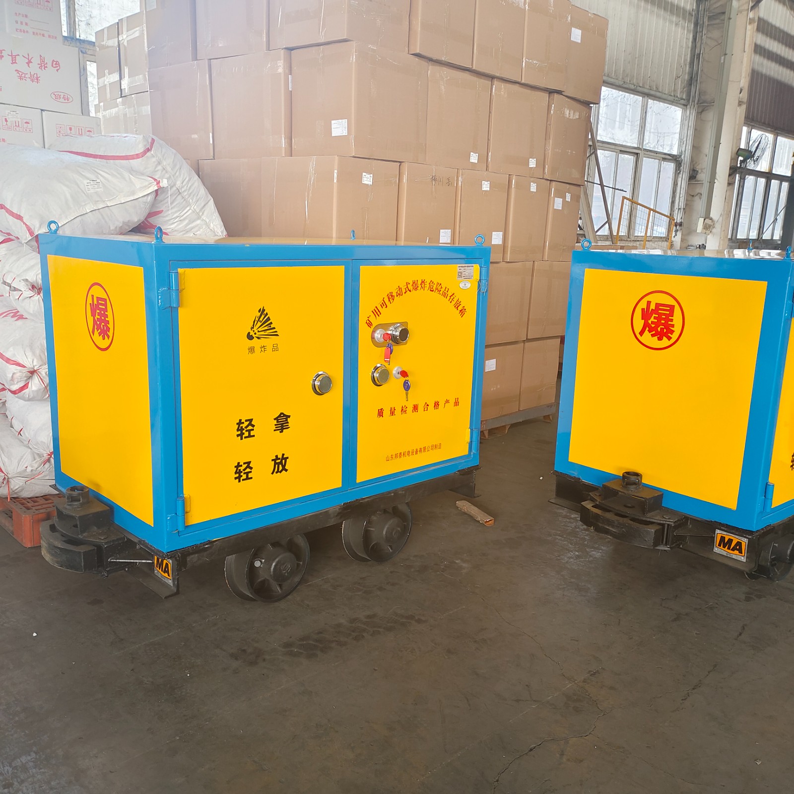 有軌式爆破器材運輸車適合應用于各類礦企運輸使用,由礦車和爆破器材專用儲存柜結合而成,符合爆破器材存放和運輸要求。并帶有專業檢測資質,包括1.公安檢測報告2.防爆檢測報告3.防靜電檢測報告4.礦安證5.合格證