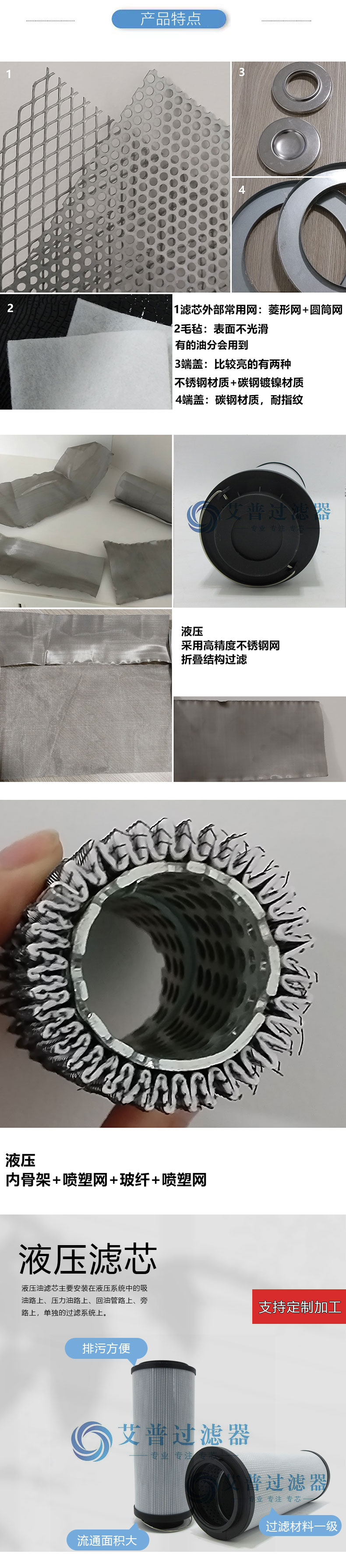 3、耐高溫、耐腐蝕、耐酸、耐堿適用于液壓油過濾。