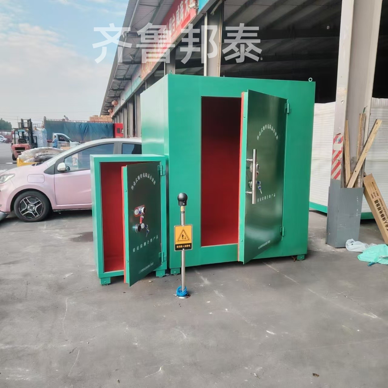 例如,BTJD-001型號的人工降雨彈存放箱是一種移動式爆炸危險品存放箱,具備雙鎖聯(lián)控、防撬防盜的特點,顏色為墨綠色。該箱子可以根據(jù)客戶需求定制尺寸及開門情況,適用于存放火工品、人工降雨彈等爆破物品。
