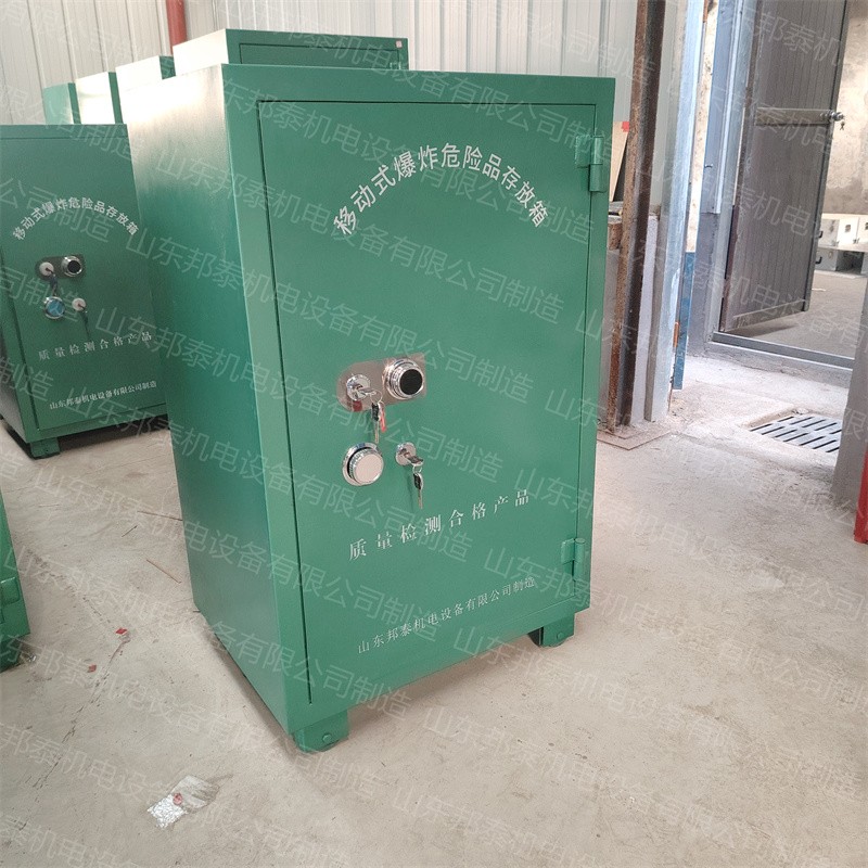 爆炸危險品存放柜,根據存放的爆炸物品的不同(炸藥、雷管),也叫做炸藥柜、雷管柜、火工品存放柜、爆破保險柜、移動式爆炸危險品存放箱等其稱呼。同時還具備有防爆、防靜電、防火、防盜、防潮等特點。主要適用于各類礦山、隧道、民爆工程、等需要開山爆破的地方,發揮著重要作用。