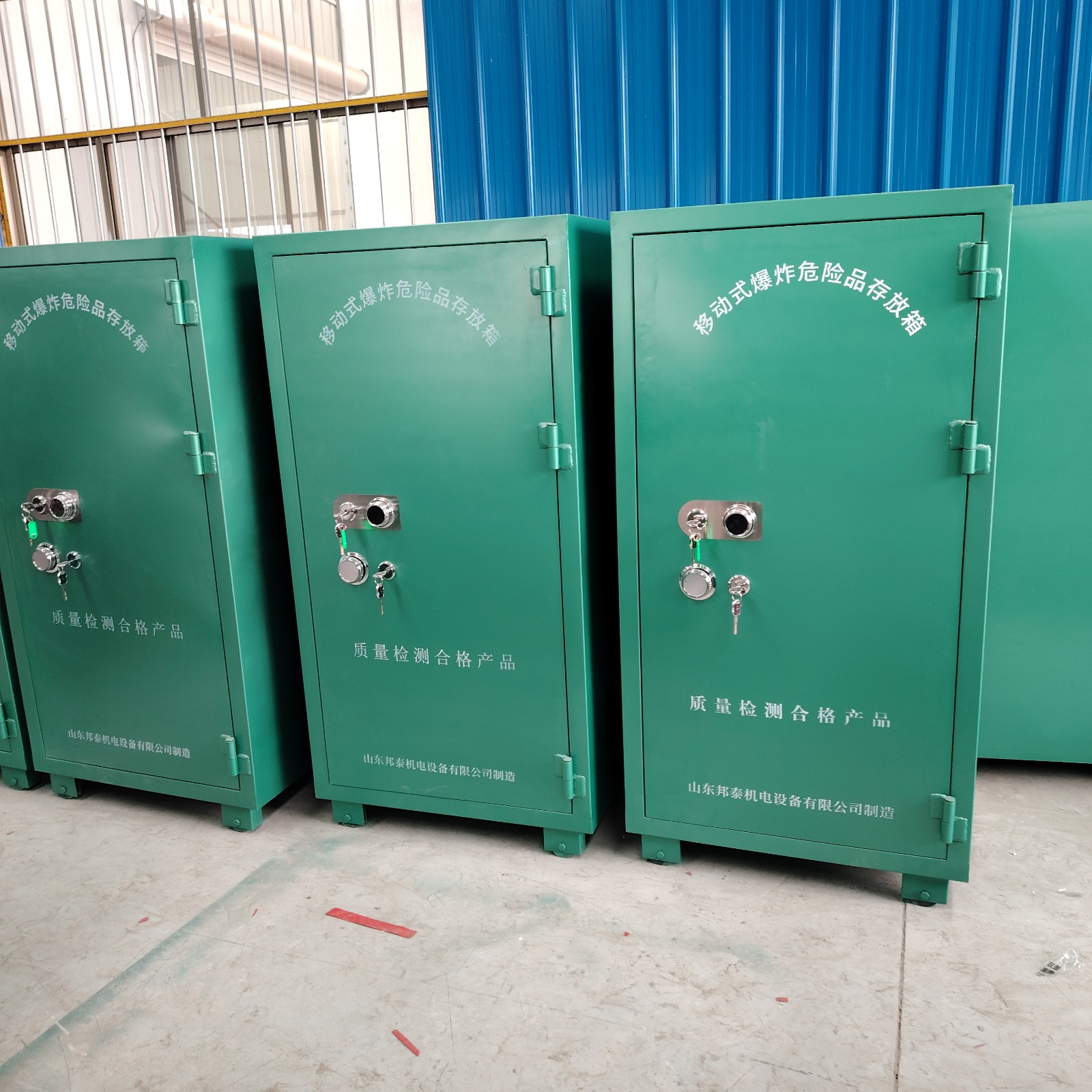 爆炸危險(xiǎn)品存放柜,根據(jù)存放的爆炸物品的不同(炸藥、雷管),也叫做炸藥柜、雷管柜、火工品存放柜、爆破保險(xiǎn)柜、移動式爆炸危險(xiǎn)品存放箱等其稱呼。同時(shí)還具備有防爆、防靜電、防火、防盜、防潮等特點(diǎn)。主要適用于各類礦山、隧道、民爆工程、等需要開山爆破的地方,發(fā)揮著重要作用。