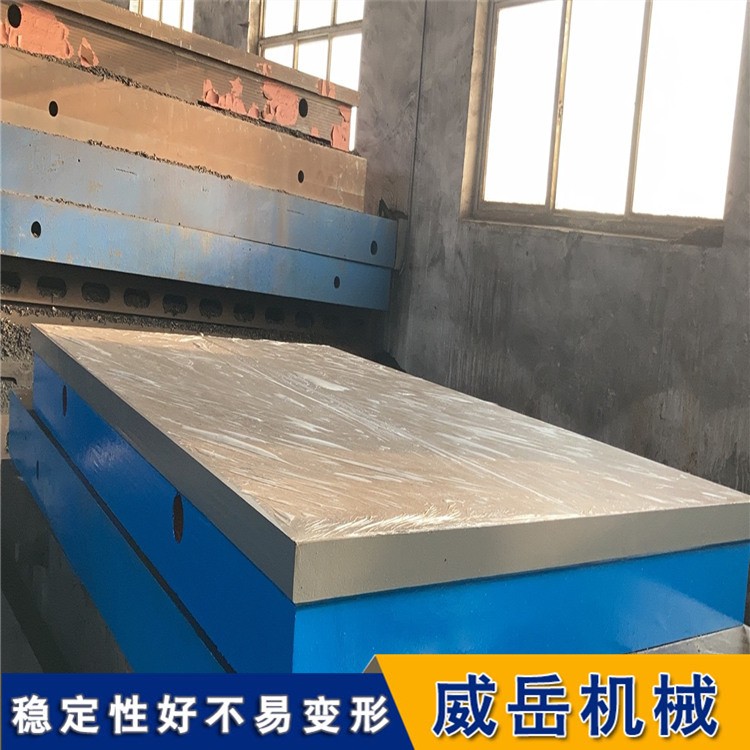 鑄鐵平板材質:強度鑄鐵HT200-300工作面硬度為HB170-240,經過兩次人工處理(人工退火600度-700度和自然時效2-3年)使用該產品的精度穩定,耐磨性能好。或者為鋼板焊接,但是一定要充分考慮鋼板的物理性能,對于鋼板鑄鐵平板的結構一定要設計合理.