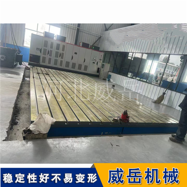 可或缺的工裝夾具。從材料特性來看,T型槽鑄鐵平臺通常采用HT200或HT250強度灰鑄鐵鑄造而成。這種材料具有優異的耐磨性和抗壓強度,其石墨片狀結構能夠吸收振動量,使平臺在工作過程中保持穩定。經過特殊的熱處理工藝后,鑄鐵內應力得到充分釋放,進一步提高了平臺的尺寸穩定性。在實際使用中,這種材料特性表現為抗變形能力,即使長期承受重型工件和設備的壓力,平臺表面也能保持平整度在0.02mm/m以內,滿足高精度加工的要求。