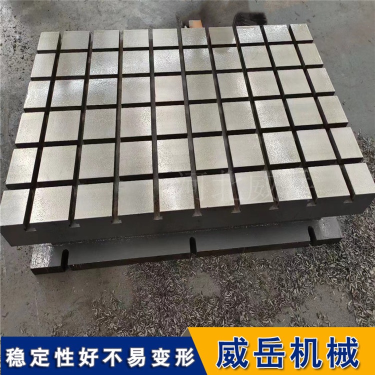 在放置工件時(shí),需注意輕拿輕放,避免工件與平臺(tái)表面發(fā)生劇烈碰撞。因?yàn)殍T鐵材質(zhì)雖硬度較高,但劇烈沖擊可能造成平臺(tái)表面出現(xiàn)凹坑、裂紋,影響其平整度。同時(shí),放置的工件重量不能超過(guò)平臺(tái)的額定承重,否則長(zhǎng)期超載會(huì)導(dǎo)致平臺(tái)變形,破壞其結(jié)構(gòu)穩(wěn)定性。在進(jìn)行測(cè)量或加工操作時(shí),應(yīng)避免在平臺(tái)表面進(jìn)行敲打、切割等破壞性操作。如需在平臺(tái)上固定工件,需使用合適的夾具,且?jiàn)A具的安裝位置要避開(kāi)T型槽的薄弱部位,防止槽體受損。此外,操作過(guò)程中要避免油污等液體長(zhǎng)時(shí)間滯留在平臺(tái)表面,若不慎灑落,應(yīng)及時(shí)清理,以防液體滲入材質(zhì)內(nèi)部造成銹蝕。