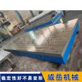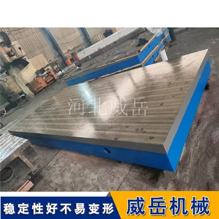 在結構設計上,HT250鑄鐵T型槽平臺遵循“剛性優先”原則。臺面厚度通常為平臺長度的1/10-1/12,例如2米長的平臺,臺面厚度約200mm,以保證足夠的承載能力;底部采用網格狀加強筋布局,筋條寬度為臺面厚度的1/2-2/3,間距控制在300-500mm,既減輕整體重量,又能均勻分散應力;T型槽的加工采用銑削工藝,槽寬精度控制在±0.1mm,槽深與槽間距根據國標設計,常見規格有14mm×9mm、18mm×11mm等,確保與T型螺栓適配。此外,為去掉鑄造內應力,HT250鑄鐵平臺需經過6個月以上的自然時效或人工時效處理,避免后期使用中出現變形。