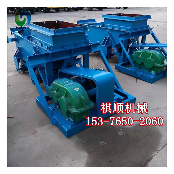 K型給料機由機架、底板(給料槽)、傳動平臺、漏斗、閘門、托輥組成,當電機開動后經彈性聯軸器,減速機、曲柄連桿機構拖動傾斜5度的底板,在輥上作直線往復運動,把煤或其它磨琢性小,粘性不大的松散粒狀,粉狀物料從給料設備中均勻地卸到受料設備中