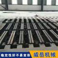 材質技術要求:優先選用HT300灰鑄鐵或QT500-7球墨鑄鐵,HT300抗拉強度≥300MPa、硬度180-250HBW,能承受長期重載而無塑性變形;QT500-7沖擊韌性≥7J/cm2,適合高頻振動的設備(如大型電機試驗臺)。材質需經“自然時效12個月+人工時效300℃×10小時”處理,內應力殘留量≤50MPa,避免后期因應力釋放導致精度漂移。