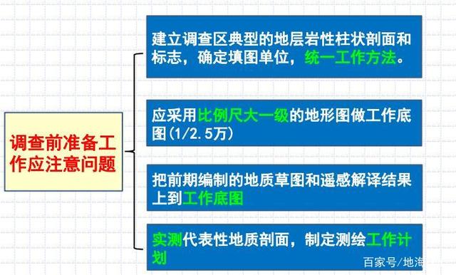 為使地質工作的設計和部署切合實際,需要事先對工作現場的地質和施工條件等進行實地的概略調查和了解,以確定填圖單位、工作部署等 。