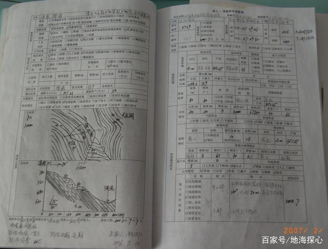每個觀測點的地質環境條件,地質災害特征,除按規定填 寫調查表外,還要用野外記錄本進行詳細記錄。記錄必須 與野外草圖相符,凡圖上表示的地質現象,均必須有記錄。填表和記錄要做到目的明確、內容全面、重點突出、數據 無誤、詞語準確、字跡工整,并附示意性圖件(平面圖、 剖面圖、素描圖等)和照片。 對各類地質災害形成條件、影響因素、誘發因素的描述應分清主次。特別是誘發因素的分析,要用數據說明。如降 雨誘發,應盡量搜集災害發生前的降雨時間、雨量數據; 如人工切坡誘發,應訪問切坡的時間,測量切坡后的坡度、高度。