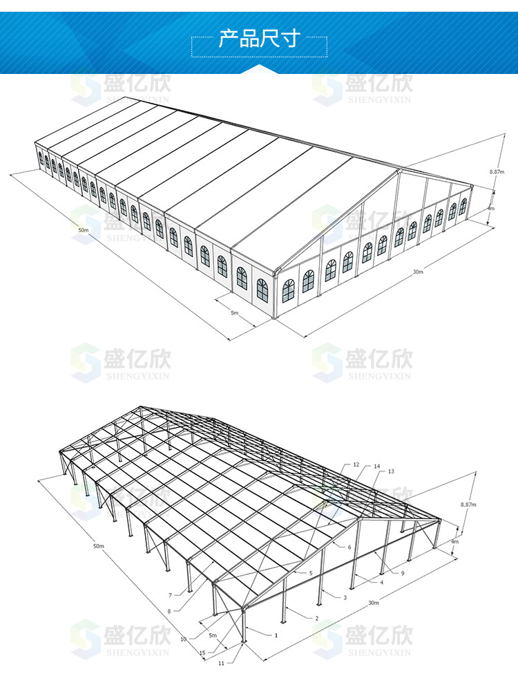 大型礦山篷房:寬度由21m到30m,邊高4米,頂高7.3~8.5米,大型礦山篷房有3米以上的邊高,在倉庫內叉車和集裝箱車自由的使用,一般大型的礦山倉儲篷房由于存儲的東西較多,所以一般都會配備叉車,所以在高度上就會有要求,如果太矮,叉車則不能行駛。