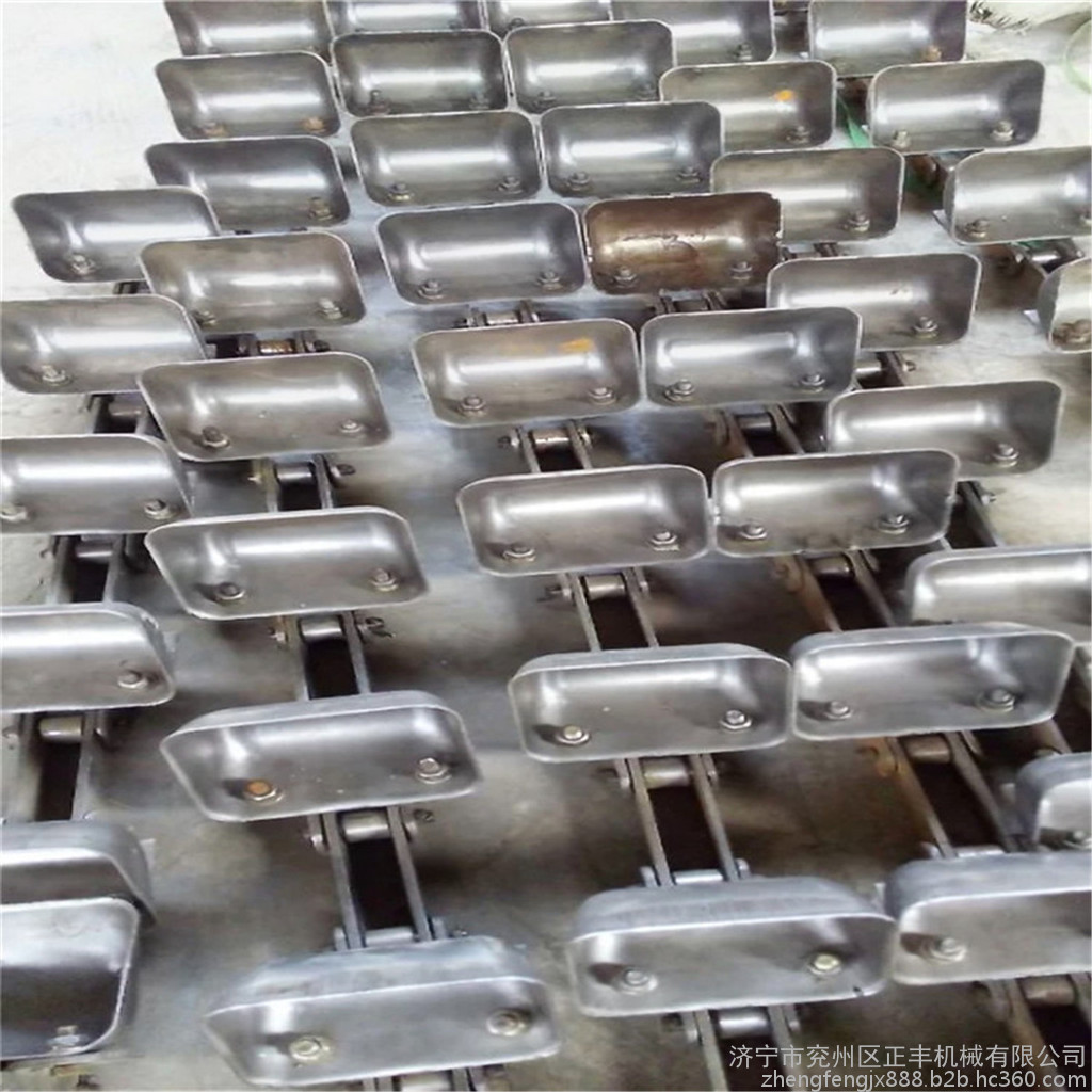 4、斗式提升機鏈條及料斗:鏈條為圓鋼焊接環鏈。料斗用螺母定在鏈條的接頭上。不同高度的斗提機現套相應數量的鏈條、接頭、及料斗。