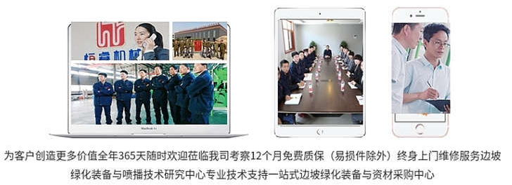 目前,我公司生產的噴播機系列、噴涂機系列等產品已在全國各地礦山、隧道、邊坡、水電工程、地鐵和市政基礎設施建設中廣泛應用,并出口到美國、加拿大、日本、馬來西亞、印尼、越南、巴基斯坦及臺灣、香港等地區。并得到美國Flexterra HP-FGM纖維材料生產商的一致認可并與我公司簽訂長期合作協議。恒睿人不斷改進,新開發的客土噴播機,給綠化噴播行業帶來了一次技術性革命,成為國內噴播機發展的前沿技術,為國內邊坡綠化施工帶來了一次新的技術。