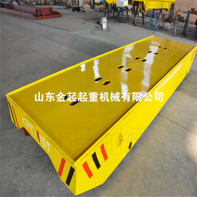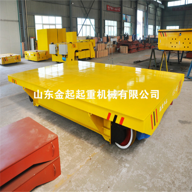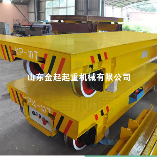 電動平車,又稱電動平板車、電平車、臺車、過跨車、電動軌道車、地爬車等,是一種廠內有軌電動運輸車輛,首先它是一種軌道型運輸車輛,需要在地面上鋪設軌道,軌道一般為工字型面接觸道軌;其次它是電驅動車輛,在電機減速機驅動下自動運行,再次它是一種平板車,臺面平整無廂蓋,特殊情況下也可以是非平面但無廂蓋,車體無方向盤只有前進后退方向(即使轉彎也城靠軌道轉彎)。此種車輛具有結構簡單、使用方便、承載能力大、不怕臟不怕砸、維護容易、使用壽命長等特點,因其方便、壯實、經濟、實用、易清理等諸多優點,成為企業廠房內部及廠房與廠房之間短距離定點頻繁運載重物的**運輸工具。